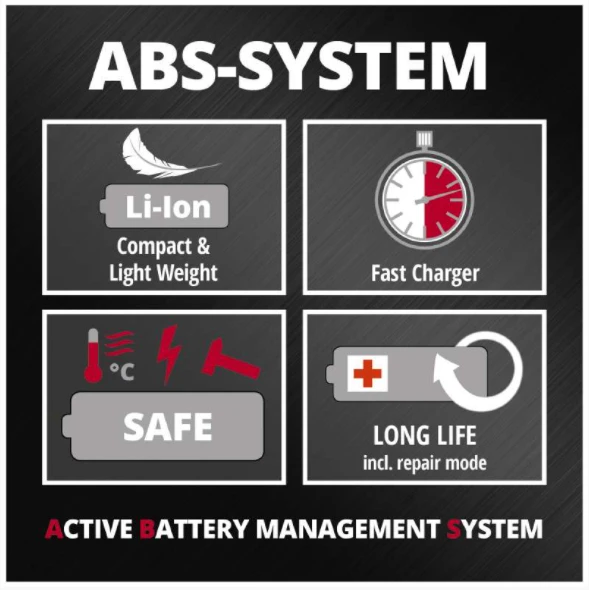 La batería y el cargador se venden por separado, por ejemplo, con el práctico kit de arranque en diferentes niveles